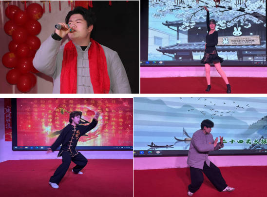 歌舞类节目同样亮点频出。独唱《海阔天空》激昂励志,吉他弹唱《无名的人》温暖感人;舞蹈《寄明月》衣袖翩跹,尽显国风雅韵;拉丁舞组合《星动拉丁・风华绽放》则热情洋溢,洋溢着青春活力。特别值得一提的是,武术组合《少年风骨・武动新春》与传統功法展示《缠丝逐韵・八段迎春》,刚柔并济,生动诠释了中华传统体育与养生文化的魅力,引来阵阵掌声。